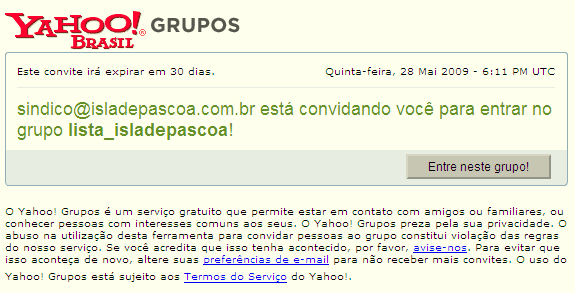 Com esses dados, o yahoogrupos enviará um convite para participar da nossa lista de discussão e você receberá um email com o seguinte conteúdo:
